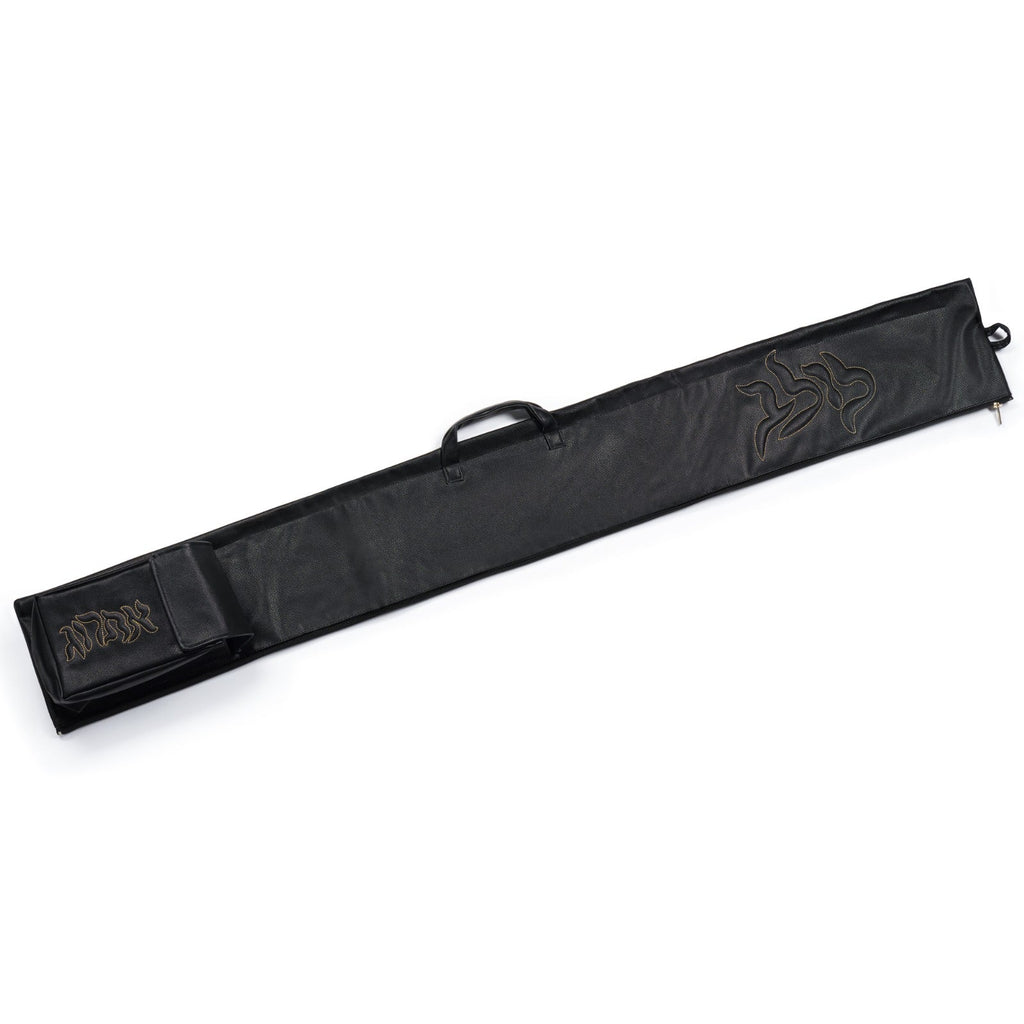This magnificent Pillow Script Lulav Case will make a striking addition to your Sukkos. Features smooth leatherette, raised embroidery of לולב and אתרוג in our signature pillow script, and a fully padded interior. Includes a matching attached Esrog bag for ultimate convenience and coordination. The pole placement is opposite the handles and zipper for extra secure carrying!