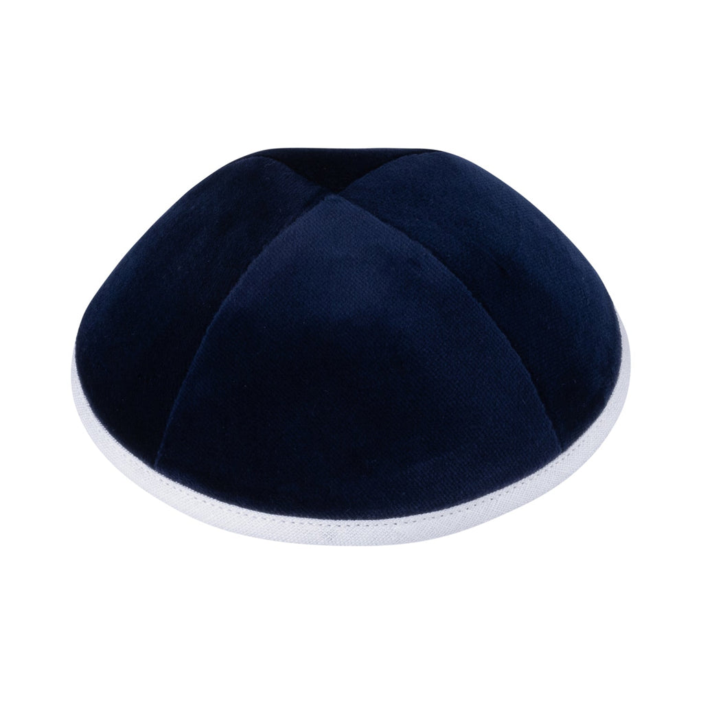 IKIPPAH NAVY VELVET W/ WHITE RIM YARMULKE 4