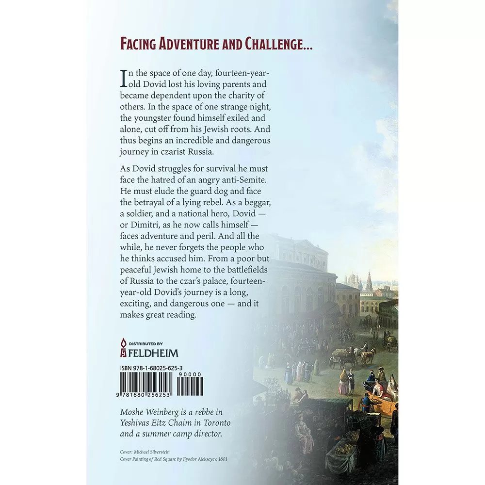 In the space of one day, fourteen-year Dovid lost his loving parents and became dependent upon the charity of others. In the space of one strange night, the youngster found himself exiled and alone, cut off from his Jewish roots. And thus begins an incredible and dangerous journey in czarist Russia. As Dovid struggles for survival he must face the hatred of an angry anti-Semite. He must elude the guard dog and face the betrayal of a lying rebel. As a beggar, a soldier, and a national hero, Dovid — or Dimitri, as he now calls himself — faces adventure and peril. And all the while, he never forgets the people who he thinks accused him. From a poor but peaceful Jewish home to the battlefields of Russia to the czar’s palace, fourteen-year-old Dovid’s journey is a long, exciting, and dangerous one — and it makes great reading.