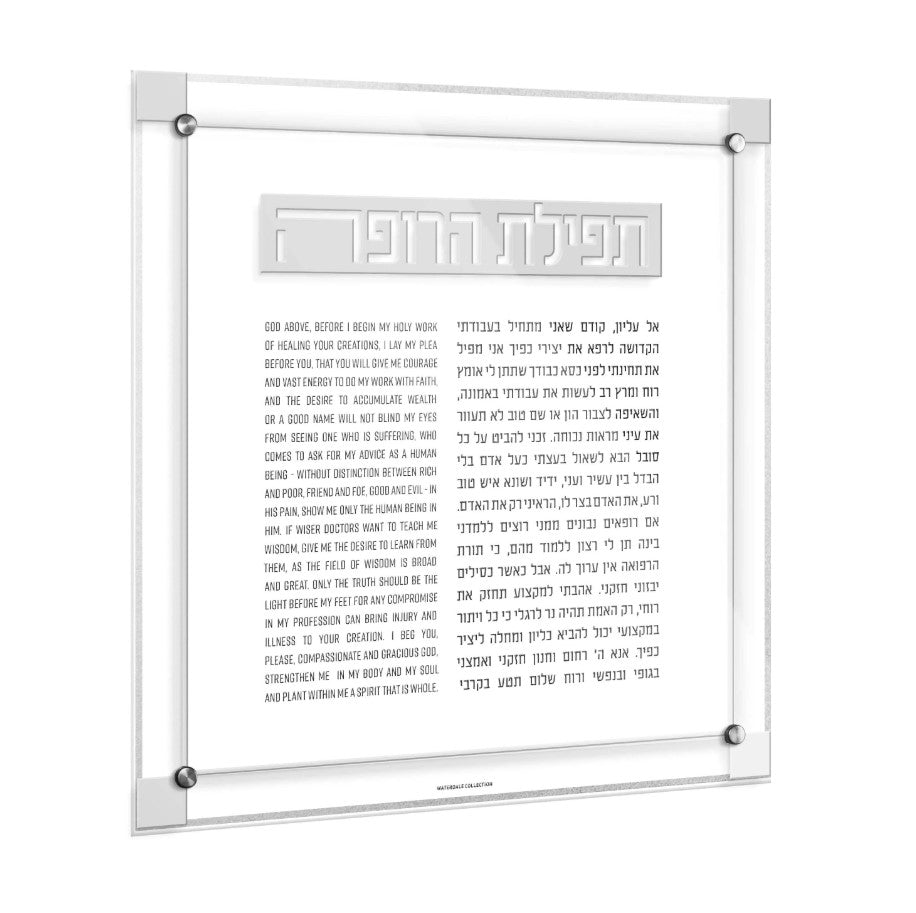 A new take on the classic lucite wall arts! This Classic 2.0 Tefillas Harofeh / Doctor's Prayer flows so nicely in every style of decor.